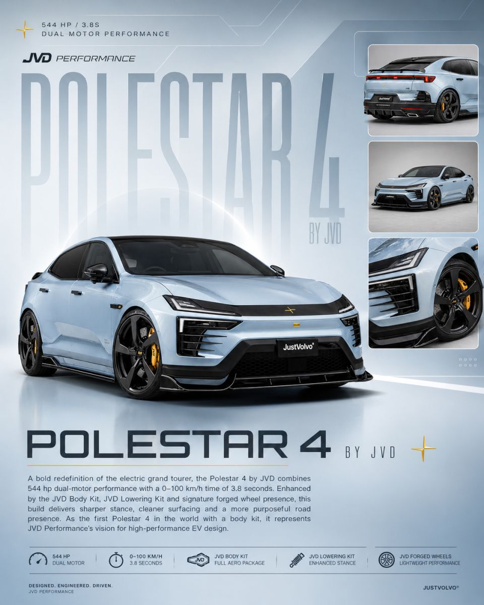 The JVD Performance Polestar 4 Package is more than a collection of parts. It is a complete design and identity program for owners who want their Polestar 4 to stand apart as one of the boldest premium EV builds on the road.