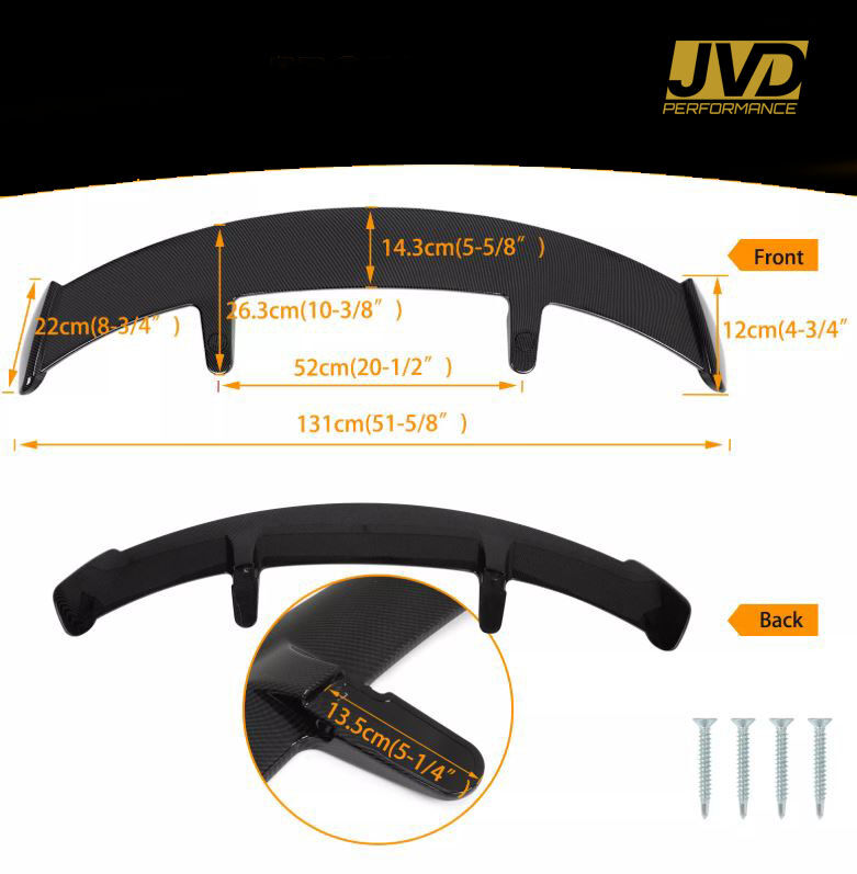 Upgrade your vehicle’s look and performance with this premium carbon-fibre rear spoiler from JVD Performance. Designed for a sleek, aggressive finish, it enhances rear-end styling while improving aerodynamic stability at speed. Lightweight, durable, and built for a precise fit, this spoiler is the perfect addition for anyone wanting a sportier, high-quality exterior upgrade.